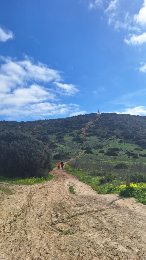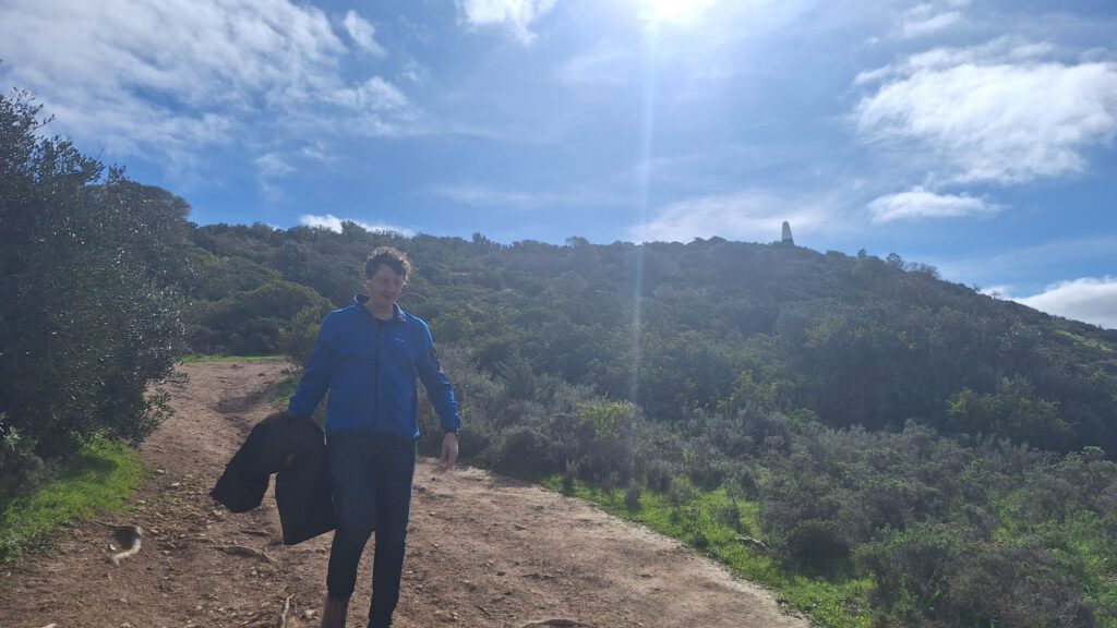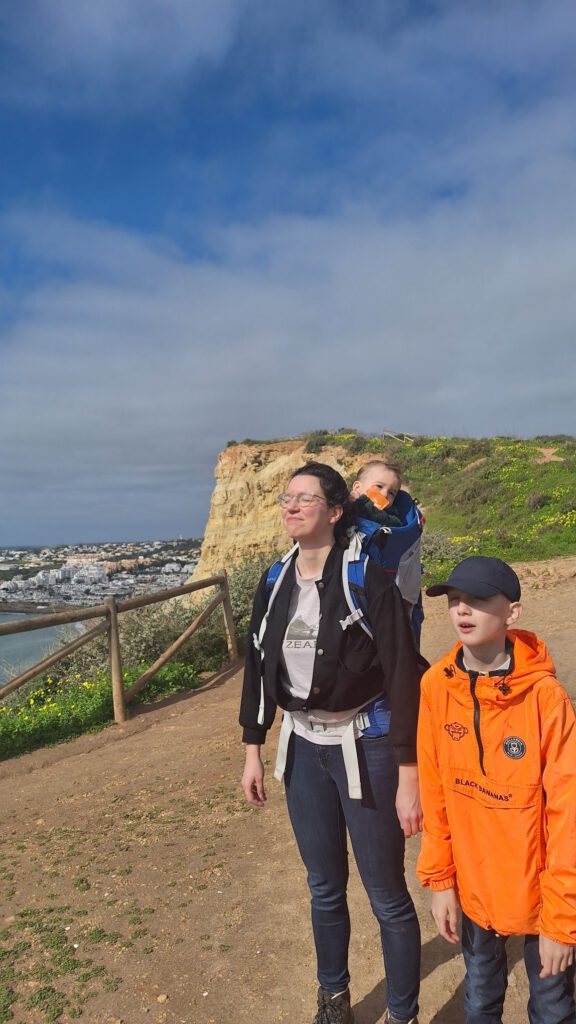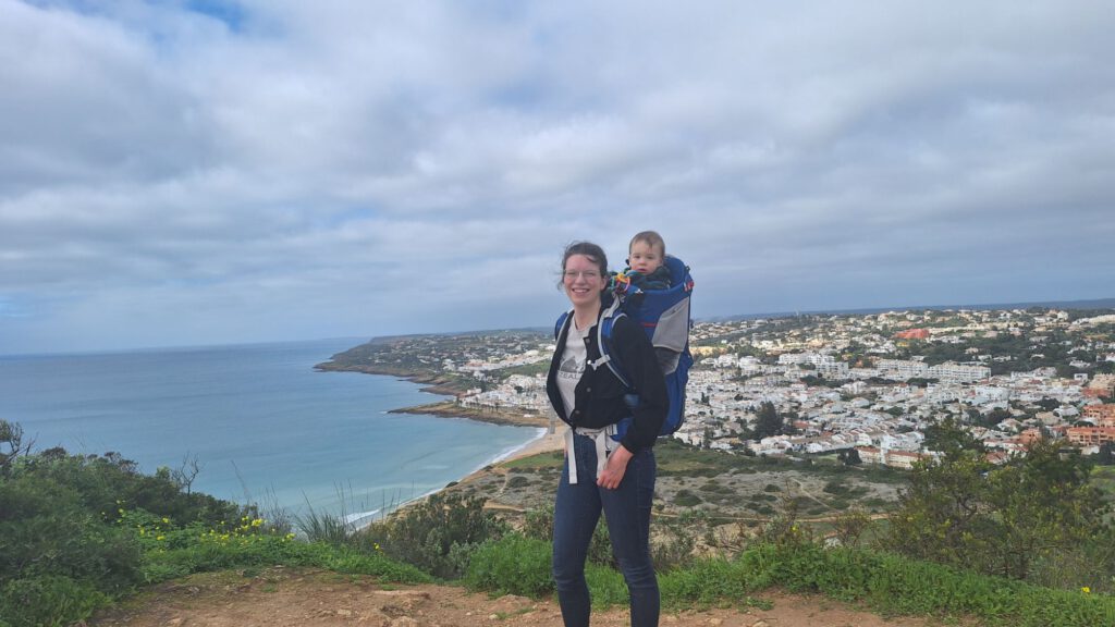 We willen het uitzicht bewonderen vandaag. We trekken de wandelschoenen aan en daar gaan we. Marijn gaat ook mee en die heeft geen wandelschoenen waar hij best van baalt want het is een steile klim en er zitten gladde stukjes bij. Respect voor Sandra die zelfs omhoog wandelt met thijmen op haar rug.